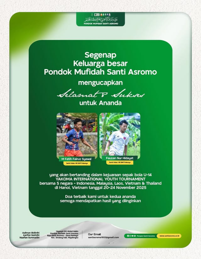 Brosur Santi Asromo Islamic Boarding School Dapat di Unduh di sini.