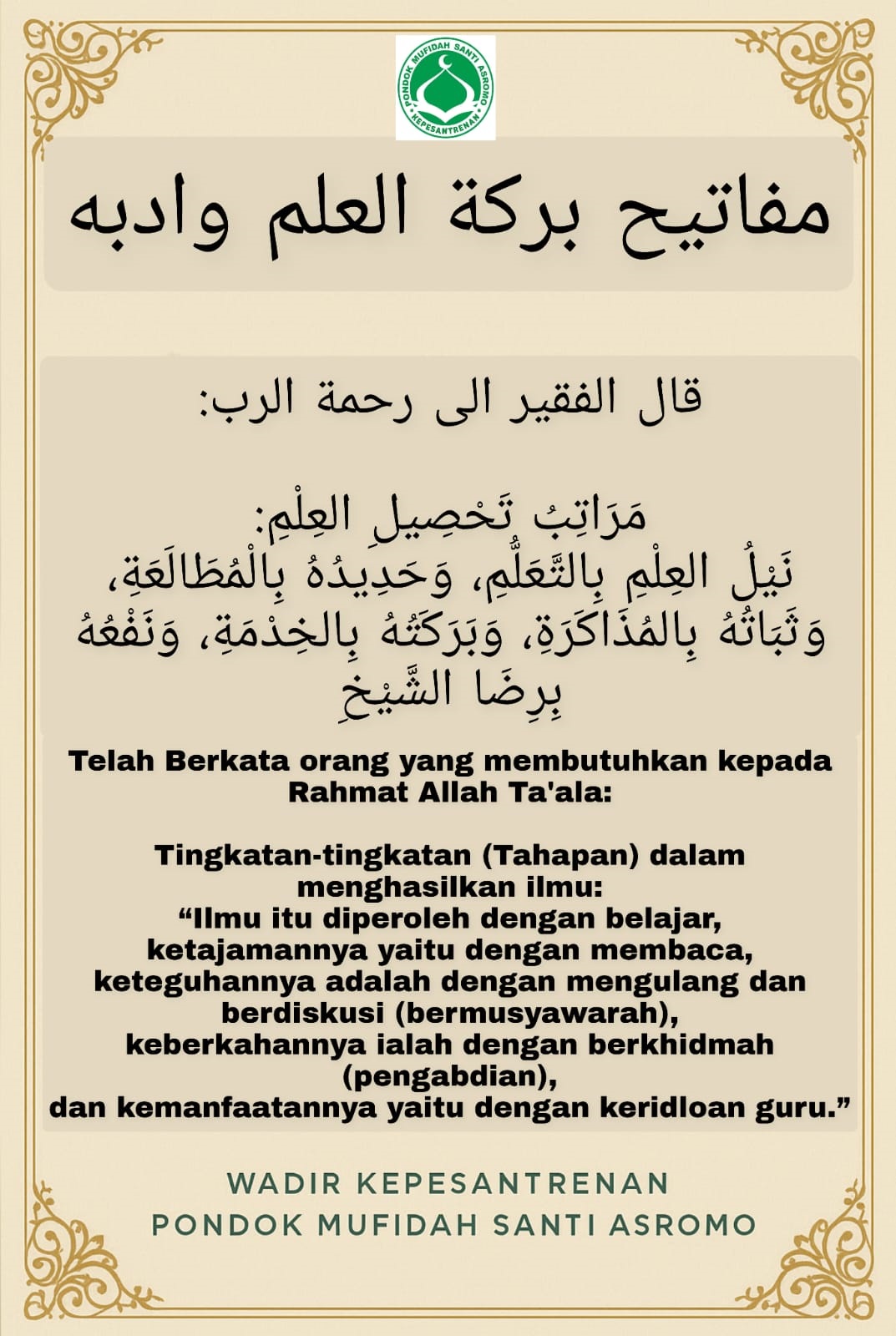 Media Asromo 9 Oktober 2025.Keabadian hanya milik Allah ta'ala. Sosok yang biasa tersenyum di antara kerumunan halaqah...